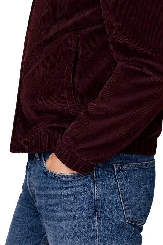 Fine Cotton Velour Corduroy Bomber Jacket in Burgundy