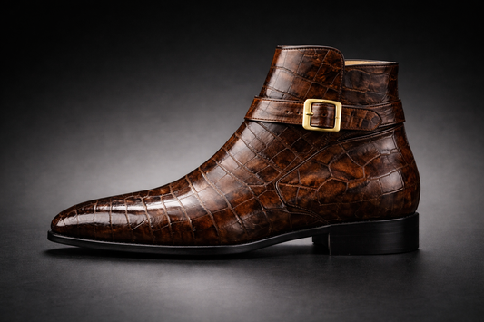 Gent Row Chocolate Brown Crocodile Embossed Chelsey Boots with Monk Strap