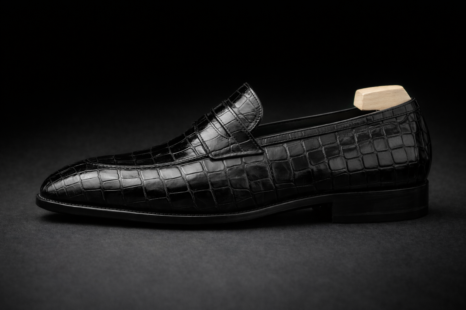 Gent Row Genuine Crocodile Loafers in Black
