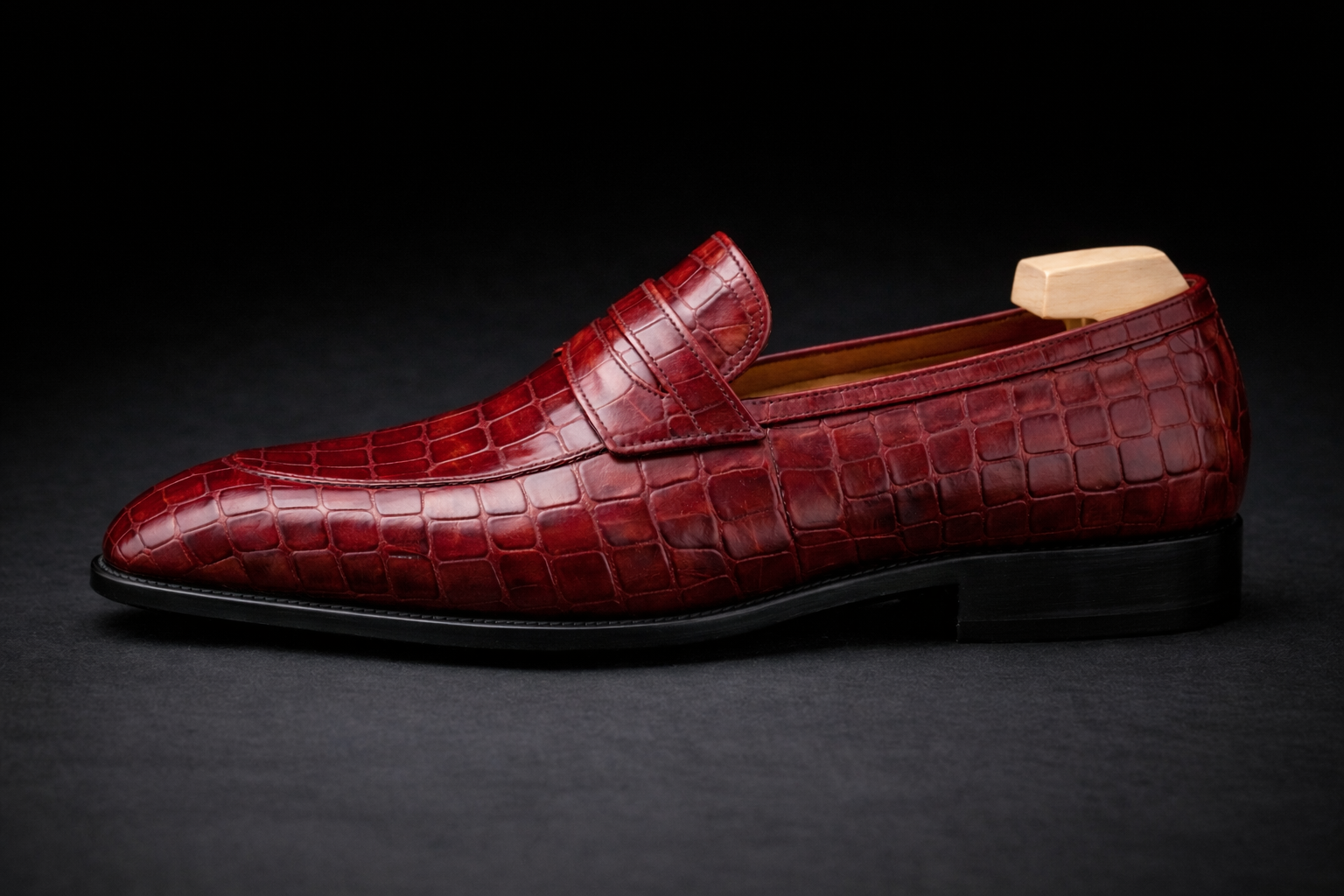 Gent Row Genuine Crocodile Loafers in Burgundy